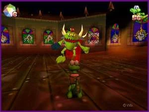 Croc heads out to Baron Dante's own castle, hoping to take him out in the clash. Croc defeats Dantini after Dantini, and after defeating all of Baron Dante's soldiers like a one Crocodile army, Croc finally reaches Baron Dante's room. However, Dante had seen the attack coming, and was ready for Croc. He launched a full scale assault on Croc, pushing Croc to his limit, and Croc couldn't even hit Baron Dante. After a while, Croc started hitting Baron Dante with his tail attack, causing quite a bit of damage. After hitting Baron Dante one too many times, everything goes black. They're back in the same room, but Baron Dante starts using more aggressive, physical attacks. Baron Dante charges against a wall, smashing his head into it, allowing Croc to hit him in the back. Croc repeats this strategy a few more times, hitting Baron Dante several more times. Until everything goes black again. Croc looks around, and sees Baron Dante levitating in the air, and Croc knows that he's pushed Baron Dante to his limit as well. Dante fires multiple electrical projectiles at Croc, and he dodges them. Dante lands to the floor, and takes a few seconds to breathe, making it the perfect time for Croc to deliver the final blow. And with a final scream, Baron Dante spins faster and faster until suddenly shrinking until creating a small explosion of sparkles. Croc does a victory dance, over excited that he won the battle with Baron Dante. Croc then hears King Rufus's squeak from his Cage and turns to him. He then frees King Rufus with one whack from his tail, opening it. Lastly, King Rufus leaps into his backpack before Beany appears over Croc. Beany teleports Croc and King Rufus back to Gobbo Valley.