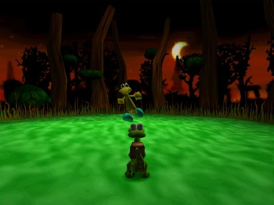 In the arena, Tooty will run at Croc for a short time before suddenly standing still to take a breath. You must keep running while he is chasing you but try to keep the camera at an angle where you can still see him. When he stops, quickly run up to him and use tail attack. He will then chase you again but for a longer amount of time, you simply must attack him in the same way for three times to complete the level.