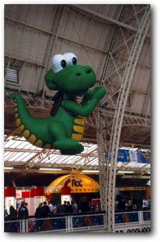 The earliest statue was displayed at ECTS in 1997, and features Croc standing upright.