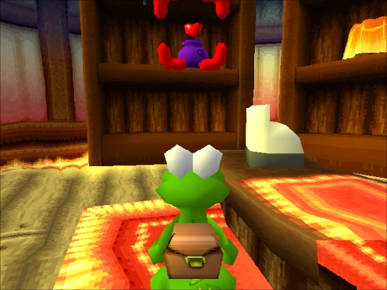 Croc can purchase various items that will help him on his quest in this shop, as well as travel to other villages once he has defeated the Guardians from each village.